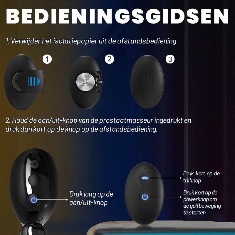 10-frequentie vibratie & 10-frequentie golfbeweging prostaat massage speeltje, beide functies kunnen apart en afzonderlijk gebruikt worden.