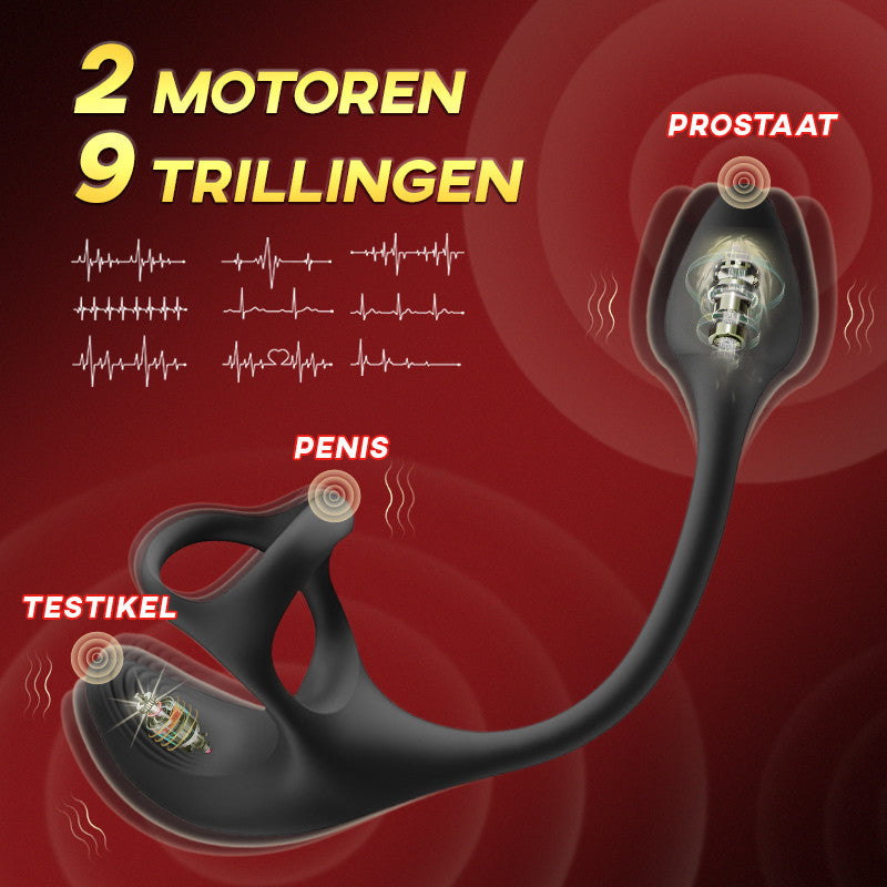 Zacht en realistisch anaal speeltje voor prostaat met 9 vibratiestanden en dubbele ring voor ultiem genot