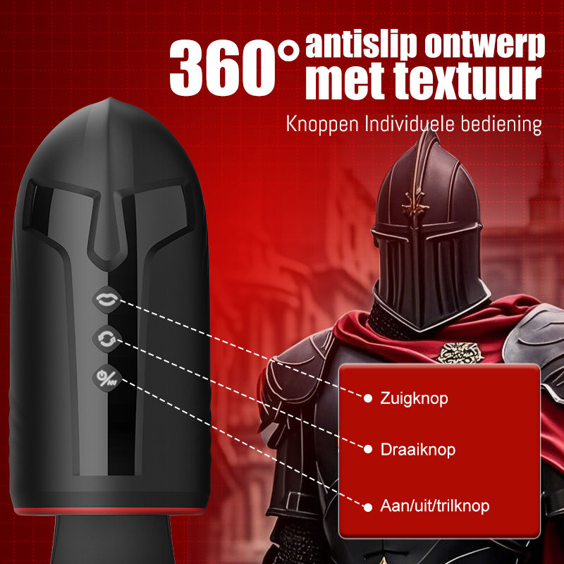 UNIEK KNIGHTLY APPARAAT: Sfeervol en prachtig uiterlijk ontwerp, verover als een middeleeuwse krijger! TRIPLE FUNCTION MASTURATOR: 360° intelligente rotatie (3 snelheden) + 10 vibratie standen + 5 zuig standen, meerdere standen in elke combinatie;