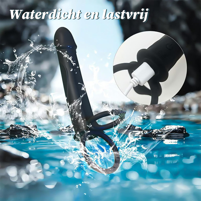 Zacht en realistisch anaal speeltje voor prostaat met 9 vibratiestanden en dubbele ring voor ultiem genot