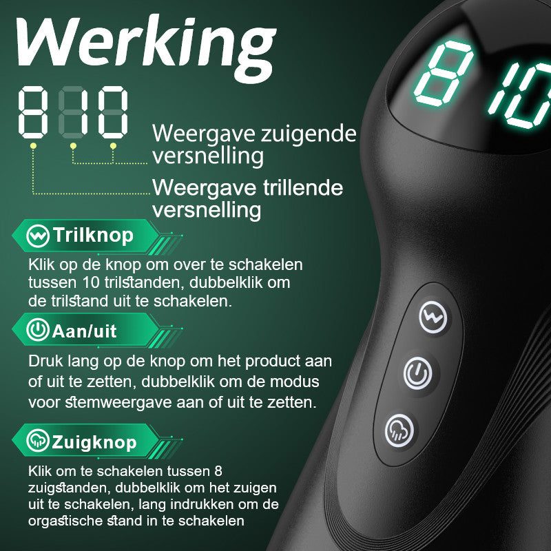 10 soorten vibratie standen met 8 soorten zuig standen, brengen de ultieme stimulatie van het bloed spuiten.