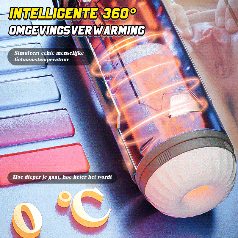【WARMMODUS】 Deze masturbator voor mannen kan verwarmd worden tot een temperatuur van 104°F/40°C voor een ongeëvenaarde verwarmende ervaring! Zet hem aan voor gebruik en laat hem 8-10 seconden de gewenste temperatuur bereiken.