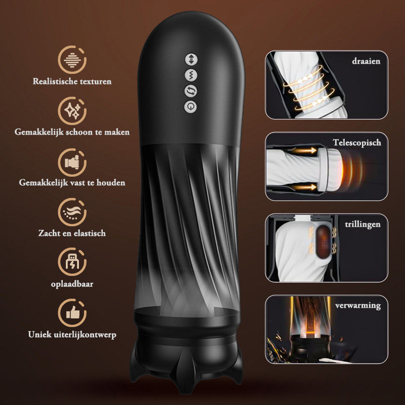 TORNADO 3.0 Versie 7 Vibrerende 5 Roterende Stuwende Pijp Masturbator